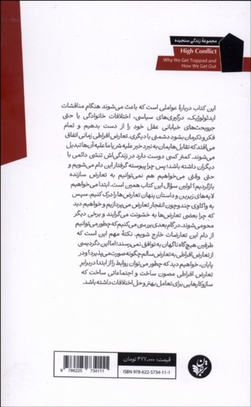 اين کتاب دربار? عواملي است که باعث ميشوند هنگام مناقشات ايدئولوژيک، درگيريهاي سياسي، اختلافات خانوادگي يا حتي جروبحثهاي خياباني عقل خود را از دست بدهيم و تمام فکر و ذکرمان بشود دشمني با ديگري. تعارض افراطي زماني اتفاق ميافتد که تقابلهايمان به نبرد خير عليه شر يا ما عليه آنها تبديل ميشوند. کمتر کسي دوست دارد در زندگياش تنشي دائمي با ديگران داشته باشد؛ پس چرا پيوسته گرفتار اين دام ميشويم و حتي وقتي ميخواهيم هم نميتوانيم به تعارض سازنده بازگرديم؟ اولين سوال اين کتاب همين است. ابتدا ميخواهيم لايههاي زيرين و داستان پنهان تعارضها را درک کنيم. سپس به واکاوي چندوچون انفجار تعارض ميپردازيم و خواهيم ديد که چرا بعضي تعارضها به خشونت ميگرايند و برخي ديگر محو ميشوند. در گام بعدي بررسي ميکنيم که چطور ميتوانيم از دام اين تعارضات خارج شويم. نکته مهم اين است که طرفين هيچگاه ناگهان به توافق نميرسند؛ اما اين دگرديسي از تعارض افراطي به تعارض سالم چگونه صورت ميپذيرد؟ و در پايان، خواهيم ديد که چطور ميتوان روابط را از ابتدا دربرابرِ تعارض افراطي مصون ساخت و اجتماعاتي ساخت که سازوکارهايي براي تعامل بهتر و حل اختلافات داشته باشد.