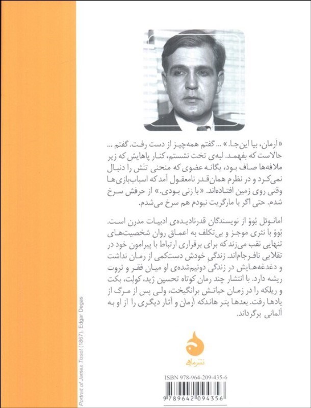 امانوئل بُوو از نويسندگان قدرناديدهي ادبيات مدرن است. بُوو با نثري موجز و بيتکلف به اعماق روان شخصيتهاي تنهايي نقب ميزند که براي برقراري ارتباط با پيرامون خود در تقلايي نافرجاماند. زندگيِ خودش دستکمي از رمان نداشت و دغدغههايش در زندگي دونيمشدهي او ميان فقر و ثروت ريشه دارد. با انتشار چند رمان کوتاه تحسين ژيد، کولِت، بکت و ريلکه را در زمان حياتش برانگيخت، ولي پس از مرگ از يادها رفت. بعدها پتر هاندکه اَرمان و آثار ديگري را از او به آلماني برگرداند.