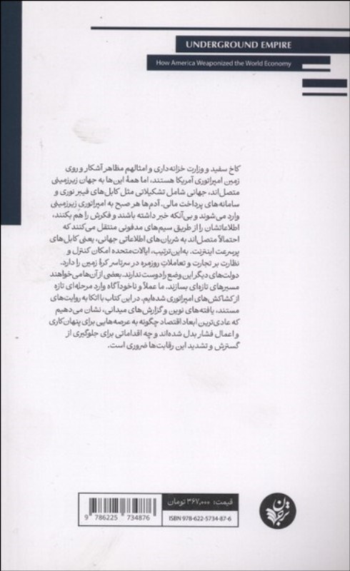 کاخ سفيد و وزارت خزانهداري و امثالهم مظاهر آشکار و روي زمين امپراتوري آمريکا هستند، اما هم? اينها به جهان زيرزميني متصلاند، جهاني شامل تشکيلاتي مثل کابلهاي فيبر نوري و سامانههاي پرداخت مالي. آدمها هر صبح به امپراتوري زيرزميني وارد ميشوند و بيآنکه خبر داشته باشند و فکرش را هم بکنند، اطلاعاتشان را از طريق سيمهاي مدفوني منتقل ميکنند که احتمالاً متصلاند به شريانهاي اطلاعاتي جهاني، يعني کابلهاي پرسرعت اينترنت. بهاينترتيب، ايالاتمتحده امکان کنترل و نظارت بر تجارت و تعاملاتِ روزمره در سرتاسر کره? زمين را دارد. دولتهاي ديگر اين وضع را دوست ندارند. بعضي از آنها ميخواهند مسيرهاي تازهاي بسازند. ما عملاً و ناخودآگاه وارد مرحلهاي تازه از کشاکشهاي امپراتوري شدهايم. در اين کتاب با اتکا به روايتهاي مستند، يافتههاي نوين و گزارشهاي ميداني، نشان ميدهيم که عاديترين ابعاد اقتصاد چگونه به عرصههايي براي پنهانکاري و اعمال فشار بدل شدهاند و چه اقداماتي براي جلوگيري از گسترش و تشديد اين رقابتها ضروري است.