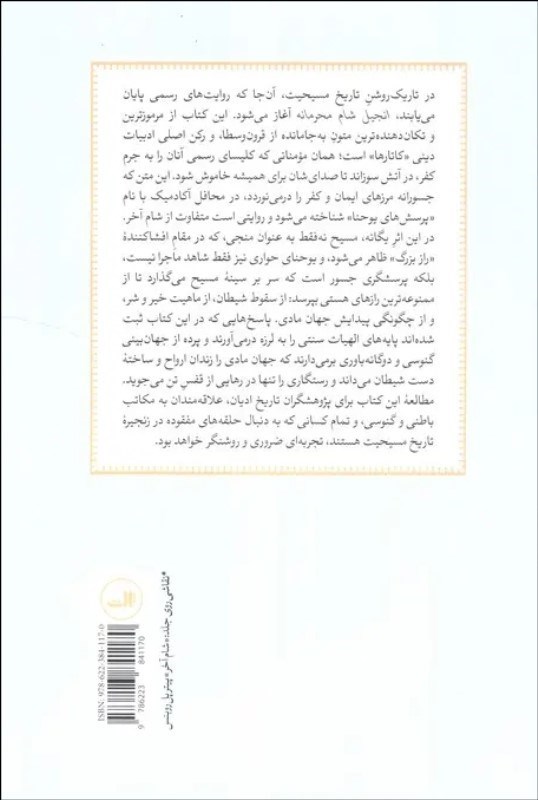 در تاريك روشن تاريخ مسيحيت،آن جا كه روايت هاي رسمي پايان مي يابند،انجيل شام محرمانه آغاز مي شود.اين كتاب از مرموزترين و تكان دهنده ترين متون به جا مانده از قرون وسطا،و ركن اصلي ادبيات ديني «كاتارها» است...