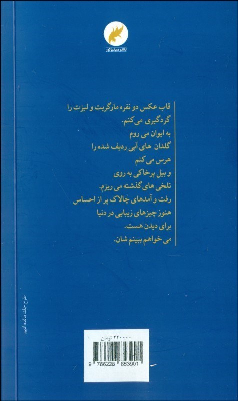 قاب عكس دو نفره مارگريت و ليزت را گردگيري مي كنم.به ايوان مي روم گلدان هاي آبي رديف شده را هرس مي كنم و بيل پر خاكي به روي تلخي هاي گذشته مي ريزم.