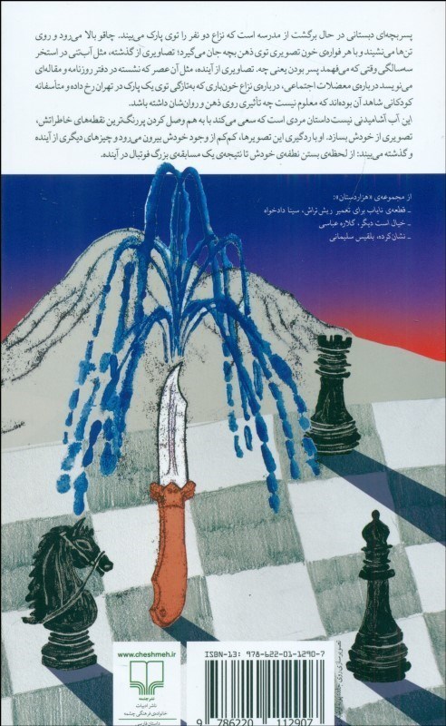 پسر بچه اي دبستاني در حال برگشت از مدرسه است كه نزاع دو نفر را توي پارك مي بيند.چاقو بالا مي رود و روي تن ها مي نشيند و با هر فواره خون تصويري توي ذهن بچه جان مي گيرد؛تصاويري از گذشته،مثل آب تني در استخر سه سالگي وقتي كه مي فهمد پسر بودن يعني چه.