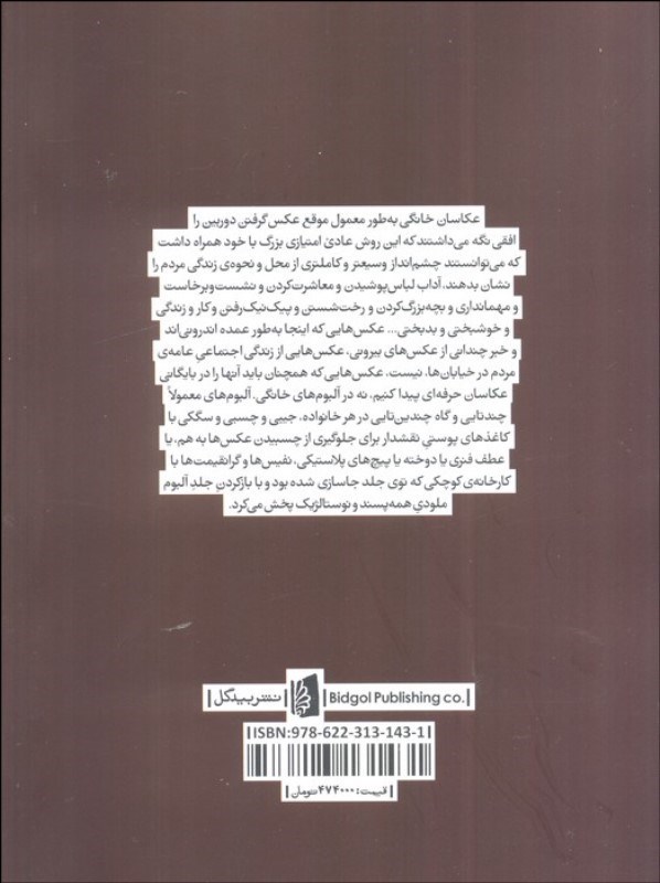 عکاسان خانگي بهطور معمول موقع عکس گرفتن دوربين را افقي نگه ميداشتند که اين روش عاديْ امتيازي بزرگ با خود همراه داشت که ميتوانستند چشمانداز وسيعتر و کاملتري از محل و نحوهي زندگي مردم را نشان بدهند، آداب لباسپوشيدن و معاشرتکردن و نشستوبرخاست و مهمانداري و بچهبزرگکردن و رختشستن و پيکنيکرفتن و کار و زندگي و خوشبختي و بدبختي... عکسهايي که اينجا بهطور عمده اندرونياند و خبر چنداني از عکسهاي بيروني، عکسهايي از زندگي اجتماعيِ عامهي مردم در خيابانها، نيست، عکسهايي که همچنان بايد آنها را در بايگاني عکاسان حرفهاي پيدا کنيم، نه در آلبومهاي خانگي. آلبومهاي معمولاً چندتايي و گاه چندينتايي در هر خانواده، جيبي و چسبي و سگکي با کاغذهاي پوستيِ نقشدار براي جلوگيري از چسبيدن عکسها به هم، يا عطف فنري يا دوخته يا پيچهاي پلاستيکي، نفيسها و گرانقيمتها با کارخانهي کوچکي که توي جلد جاسازي شده بود و با باز کردنِ جلدِ آلبوم ملوديِ همهپسند و نوستالژيک پخش ميکرد.