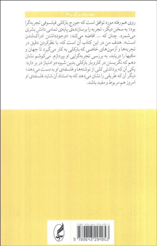 روي هم رفته مورد توافق است که جورج بارکلي فيلسوفي تجربهگرا بود؛ به سخن ديگر تجربه را بر سازندهي پايهي تمامي دانش بشري ميشمرد. چنان که.... افاضه ميکند وجود داشتن ادراک شدن است. هدف من در اين کتاب آن است که با نظر کردن دقيق در تجربهها و آزمونهاي خاصي که بارکلي به کار ميگيرد تا جهان و مافيها را دريابد، به بررسي تجربه گرايي او بپردازم ميکوشم نشان دهم که نگريستن در کاروبار بارکلي بدين شيوه دو امتياز در بر دارد يکي آن که برداشتي کلي از نوشتهها و فلسفهي او به دست ميدهد؛ ديگر آن که طريقي را نشان ميدهد که به استناد آن شايد فلسفهي او امروز هم مربوط و مفيد باشد.