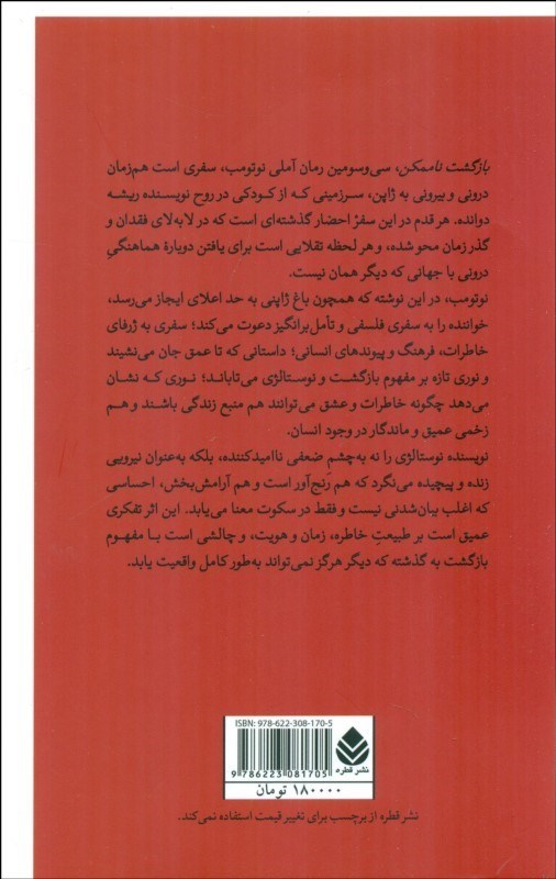 بازگشت ناممکن، سيوسومين رمان آملي نوتومب، سفري است همزمان دروني و بيروني به ژاپن، سرزميني که از کودکي در روح نويسنده ريشه دوانده. هر قدم در اين سفر احضار گذشتهاي است که در لابهلاي فقدان و گذر زمان محو شده، و هر لحظه تقلايي است براي يافتن دوباره هماهنگيِ دروني با جهاني که ديگر همان نيست. نوتومب، در اين نوشته که همچون باغ ژاپني به حد اعلاي ايجاز ميرسد، خواننده را به سفري فلسفي و تأملبرانگيز دعوت ميکند؛ سفري به ژرفاي خاطرات، فرهنگ و پيوندهاي انساني؛ داستاني که تا عمق جان مينشيند و نوري تازه بر مفهوم بازگشت و نوستالژي ميتاباند؛ نوري که نشان ميدهد چگونه خاطرات و عشق ميتوانند هم منبع زندگي باشند و هم زخمي عميق و ماندگار در وجود انسان. نويسنده نوستالژي را نه بهچشمِ ضعفي نااميدکننده، بلکه بهعنوان نيرويي زنده و پيچيده مينگرد که هم رنجآور است و هم آرامشبخش، احساسي که اغلب بيانشدني نيست و فقط در سکوت معنا مييابد. اين اثر تفکري عميق است بر طبيعتِ خاطره، زمان و هويت، و چالشي است با مفهوم بازگشت به گذشته که ديگر هرگز نميتواند بهطور کامل واقعيت يابد.