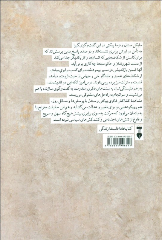 کتاب برابري نوشت? توما پيکتي و مايکل سندل اثري گفتوگومحور است که در آن مفهوم برابري از زواياي اقتصادي، فلسفي و اجتماعي بررسي ميشود. نويسندگان ميکوشند نشان دهند برابري مفهومي ساده يا بديهي نيست و بدون روشنکردن معناي آن، سخنگفتن از عدالت و سياست اجتماعي به نتيج? روشني نميرسد. کتاب با زباني روشن و ساختاري فشرده، خواننده را وارد يکي از بنياديترين بحثهاي انديش? معاصر ميکند.