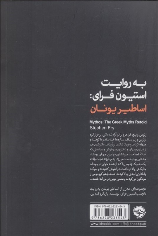 عشق پديدهاي بهغايت پيچيده است و يونانيان اين را بهخوبي درک ميکردند.| کتاب حاضر نخستين جلد از مجموعهي چهارجلدي و مدرن اسطورههاي يونان است که نويسندهاي صاحبسبک آن را با لحني ساده، شيرين و گاهي طنزآميز به رشتهي تحرير درآورده است. فراي در اين اثر، خدايان آسماني يونان باستان را همتراز ما انسانها قرار داده تا اولين قدم آشنايي ما با اين دنياي پررمزوراز، قبل از هر چيزي، آميخته با لذت باشد. علاوه بر اين روايت جذاب، در پايان کتاب هم تصاويري از آثار هنري کلاسيکي که از اين اسطورهها الهام گرفتهاند، بههمراه يادداشت و توضيحات نويسنده، ماندگاري مطالب را در ذهن خوانندهاش بيشتر و عميقتر کرده است. استيون فراي (1957) کمدين، بازيگر، مجري، کارگردان و نويسندهي انگليسي است. او بههمراه هيو لاري در برنامهي «دَمي با فراي و لاري» به شهرت رسيد. او مجري بيش از 108 قسمت از برنامهي کيو. آي، صداپيشهي هر هفت کتاب مجموعهي هري پاتر و نويسندهي چهار رمان پرفروش است.