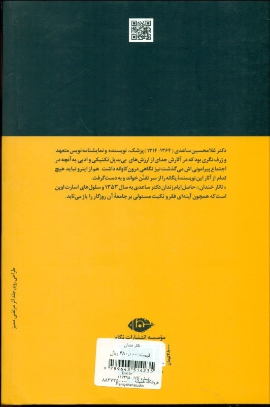 “تاتارخندان” رماني جذاب است و در اصل برشي از تاريخ اجتماعي ايران است که نويسنده، با گشت و گذار در واقعيتهاي اجتماعي روزانه، خواننده را پابه پاي راوي که پزشکي است جوان و سرخورده از يک شکست عشقي، و دلگير از نقشي که مدرنيتهي نارس بر او تحميل کرده، همهي خوشيها، لذتهاي زندگي شهري و آسايش روزگار مدرن را کنار گذاشته و ميخواهد که با تفکر و جستجو در درون خود، آرامشذهن خويش را در تبعيدي خودخواسته بازيابد.