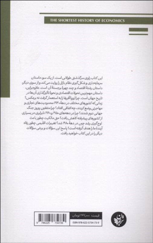 اين کتاب راوي سرگذشتي طولاني است. از يک سو، داستان سرمايهداري و شکلگيري نظام بازار را روايت ميکند و از سوي ديگر، داستان رشت? اقتصاد و چند چهر? برجست? آن است. علاوهبراين، داستان مهمترين تحولات اقتصادي و نحو? تأثيرگذاري آنها در تاريخ جهان است. چرا اروپا آفريقا را به استعمار گرفت نه برعکس؟ زمانيکه کشورهاي مختلف در ده? ???? محدوديتهاي تجاري و مهاجرتي وضع کردند، چه اتفاقي افتاد؟ چرا متفقين پيروز جنگ جهاني دوم شدند؟ چرا در دهههاي ???? و ???? نابرابري در بسياري از کشورهاي پيشرفته کاهش يافت؟ حق مالکيت چطور باعث اوجگيري رشد چين در ده? ???? شد؟ تغييرات اقليمي چطور رفاه آيند? ما را هدف گرفته است؟ پاسخ اين سؤالات و برخي سؤالات ديگر را در اين کتاب خواهيد يافت.