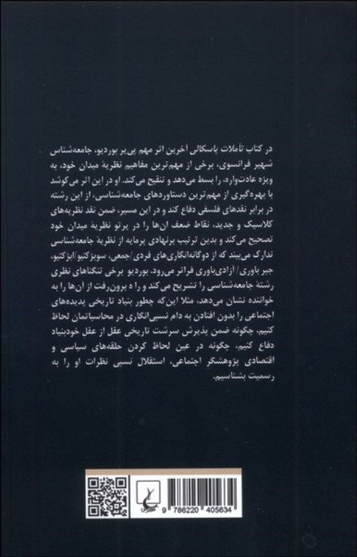 در کتاب تاملات پاسکالي آخرين اثر مهم پيير بورديو، جامعهشناس شهير فرانسوي، برخي از مهمترين مفاهيم نظري? ميدان خود، به ويژه عادتواره، را بسط ميدهد و تنقيح ميکند. او در اين اثر ميکوشد با بهرهگيري از مهمترين دستاوردهاي جامعهشناسي، از اين رشته در برابر نقدهاي فلسفي دفاع کند و در اين مسير، ضمن نقد نظريههاي کلاسيک و جديد، نقاط ضعف انها را در پرتو نظري? ميدان خود تصحيح ميکند و بدين ترتيب برنهادي پرمايه از نظري? جامعهشناسي تدارک ميبيند که از دوگانهانگاريهاي فردي/ جمعي، سوبژکتيو/ ابژکتيو، جبرباوري/ آزاديباوري فراتر ميرود. بورديو برخي تنگناهاي نظري رشت? جامعهشناسي را تشريح ميکند و راه برونرفت از آنها را به خواننده نشان ميدهد، مثلا اينکه چطور بنياد تاريخي پديدههاي اجتماعي را بدون افتادن به دام نسبيانگاري در محاسباتمان لحاظ کنيم، چگونه ضمن پذيرش سرشت تاريخي عقل از عقل خودبنياد دفاع کنيم، چگونه در عين لحاظ کردن حلقههاي سياسي و اقتصادي پژوهشگر اجتماعي، استقلال نسبي نظرات او را به رسميت بشناسيم.