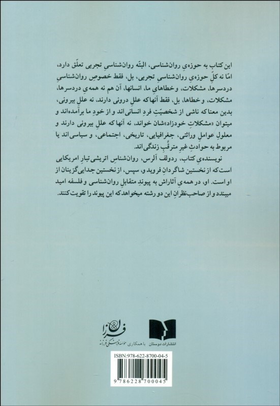 اين كتاب به حوزه روانشناسي،البته روان شناسي تجربي تعلق دارد،اما نه كل حوزه روان شناسي تجربي،فقط خصوص روان شناسي دردسرها،مشكلات،و خطاهاي ما،انسانها،آن هم نه همه دردسرها،مشكلات،و خطاهاي ما،انسانها،آن هم نه همه دردسرها،مشكلات،و خطاها،بل،فقط آنها كه علل دروني دارند....