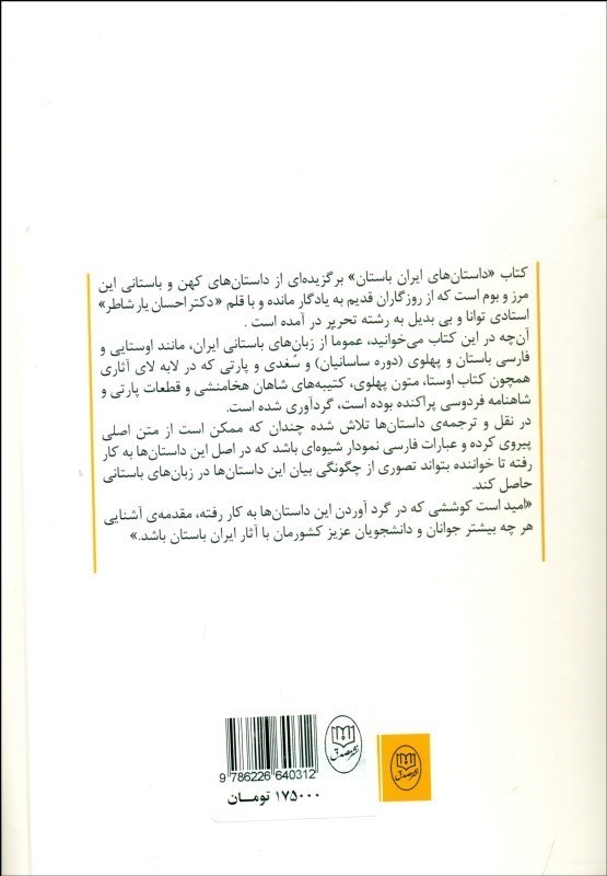 داستانهايي كه در اين كتاب گرد آمده، داستانهاي كهنسال ايران باستان است كه از روزگار قديم به يادگار مانده؛ اصل اين داستانها به زبانهايي است كه امروز ديگر رايج نيستند و مدتها است مردم ايران آنها را ترك گفتهاند.