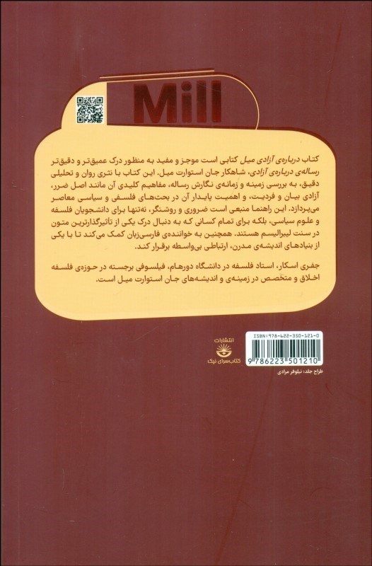 کتاب دربارهي آزادي ميل راهنمايي مختصر، منظم و گويا براي فهم متن کلاسيک «رساله دربارهي آزادي» اثر جان استورات ميل است. جفري اسکار در اين کتاب، روشن و واضح به متن اصلي ميپردازد؛ زمينهي تاريخي و فلسفي آن را بررسي ميکند و نکات کليدي آن را توضيح ميدهد. نويسنده با اين کتاب به خواننده کمک ميکند تا با اثري غالباً دشوار اما پربار آشنا شود.