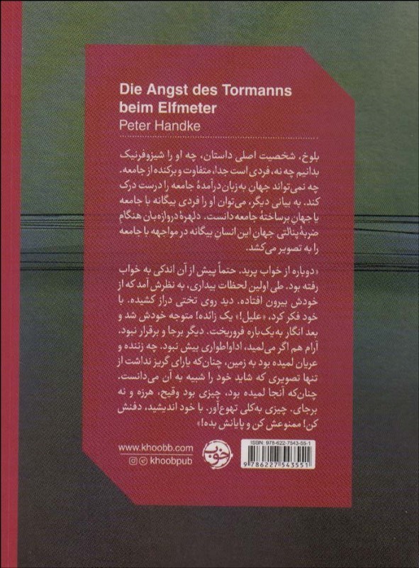 بلوخ، شخصيت اصلي داستان، چه او را شيزوفرنيک بدانيم چه نه، فردي است جدا، متفاوت و برکنده از جامعه. چه نمي تواند جهان به زبان درآمده جامعه را درست درک کند. به بياني ديگر مي توان او را فردي بيگانه با جامعه يا جهان برساخته جامعه دانست. دلهره دروازه بان هنگامِ ضربه پنالتي جهان اين انسان بيگانه در مواجهه با جامعه را به تصوير مي کشد.
