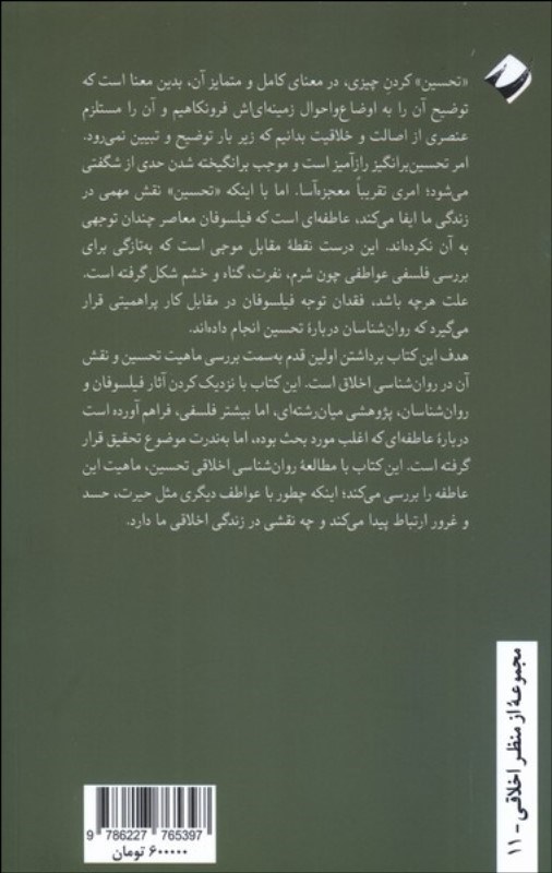هدف اين کتاب برداشتن اولين قدم به سمت بررسي ماهيت تحسين و نقش آن در روانشناسي اخلاق است. اين کتاب با نزديک کردن آثار فيلسوفان و روانشناسان، پژوهشي ميانرشتهاي، اما بيشتر فلسفي، فراهم آورده است دربار? عاطفهاي که اغلب مورد بحث بوده است، اما بهندرت موضوع تحقيق قرار گرفته است. اين کتاب با مطالع? روانشناسي اخلاقي تحسين، ماهيت اين عاطفه را بررسي ميکند؛ اينکه چطور با عواطف ديگري مثل حيرت، حسد و غرور ارتباط پيدا ميکند و چه نقشي در زندگي اخلاقي ما دارد.