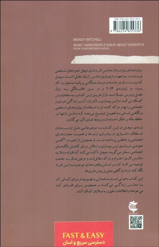 روايت هاي روزمره از دمانس اثر وندي ميچل تجربه هاي شخصي نويسنده در مواجهه با بيماري دمانس است.ميچل كه بيست سال در خدمات درمان همگاني بريتانيا مشغول به كار بود،در ژوئيه 2014 و در سن 58 سالگي به زوال عقل زودرس مبتلا شد.