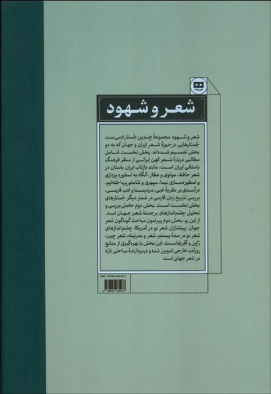 شعر و شهود مجموعهي چندين جستار ادبي است، جستارهايي عمدتا در حوزهي جهان شعر ايراني و شعر جهان كه به دو بخش تقسيم شدهاند. بخش نخست شامل مطالبي دربارهي شعر كهن ايراني از منظر فرهنگ باستاني ايران است، مانند بازتاب ايران باستان در شعر حافظ، مولوي و عطار. آنگاه به اسطورهپردازي و اسطورهسازي نيما، سپهري و شاملو پرداختهايم. درآمدي بر نظريه ادبي، مزديسنا و ادب فارسي، بررسي تاريخ زبان فارسي در شمار ديگر جستارهاي بخش نخست است. بخش دوم حاصل بررسي و تحليل چشماندازهاي برجسته شعر جهان است. از اينرو، بخش دوم پيرامون مباحث گوناگون شعر جهان، پيشتازان شعر نو در آمريكا، چشماندازهاي شعر نو در سده بيستم، شعر و مدرنيته، شعر چين، ژاپن و آفريقاست. اين بخش با بهرهگيري از منابع روزآمد خارجي تدوين شده و دربردارنده مباحثي تازه در شعر جهان است.