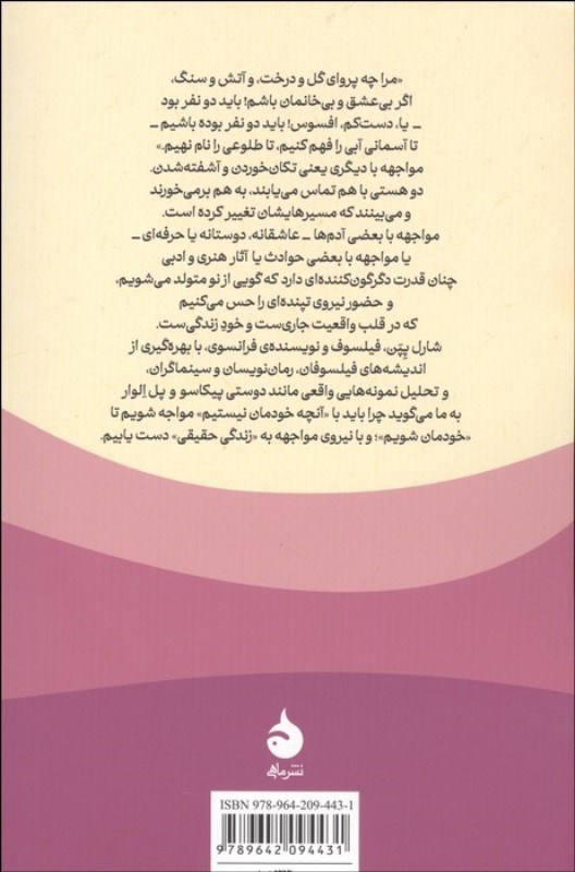 «مرا چه پرواي گل و درخت، و آتش و سنگ، اگر بيعشق و بيخانمان باشم! بايد دو نفر بود -يا، دستکم، افسوس! بايد دو نفر بوده باشيم- تا آسماني آبي را فهم کنيم، تا طلوعي را نام نهيم.» مواجهه با ديگري يعني تکانخوردن و آشفتهشدن. دو هستي با هم تماس مييابند، به هم برميخورند و ميبينند که مسيرهايشان تغيير کرده است. مواجهه با بعضي آدمها -عاشقانه، دوستانه يا حرفهاي- يا مواجهه با بعضي حوادث يا آثار هنري و ادبي چنان قدرت دگرگونکنندهاي دارد که گويي از نو متولد ميشويم، و حضور نيروي تپندهاي را حس ميکنيم که در قلب واقعيت جاريست و خود زندگيست. شارل پِپَن، فيلسوف و نويسندهي فرانسوي، با بهرهگيري از انديشههاي فيلسوفان، رماننويسان و سينماگران، و تحليل نمونههايي واقعي مانند دوستي پيکاسو و پل اِلوار به ما ميگويد چرا بايد با آنچه «خودمان نيستيم» مواجه شويم تا «خودمان شويم»؛ و با نيروي مواجهه به «زندگي حقيقي» دست يابيم.