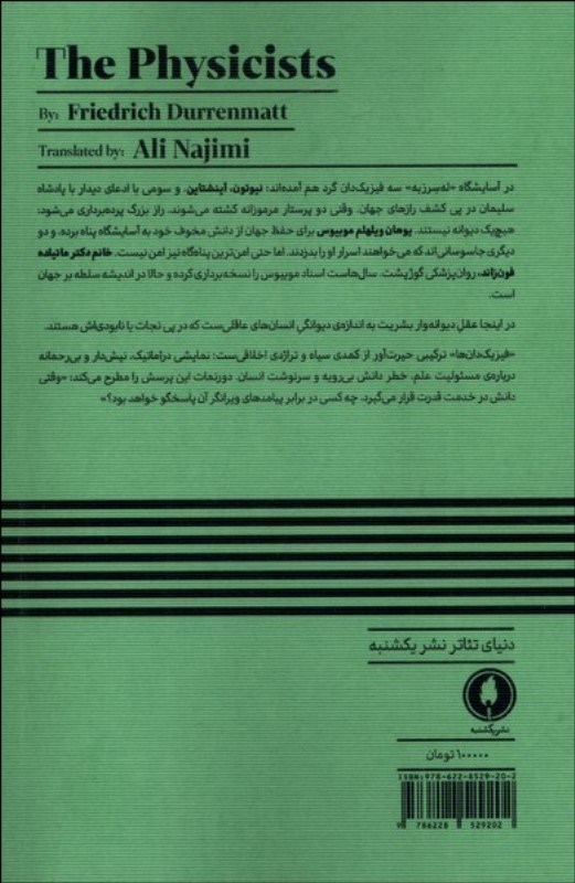 بشر با هر نگاهي که به طبيعت دارد، ابزار جرم مي سازد. مهم نيست که اين جرم را چه کسي مرتکب مي شود، مهم اين است که بشر قدرت خودش را در کشف طبيعت به کار مي گيرد تا جنايت کند. پس يک دانشمند بايد خودش را به فراموشي بزند، حتي اگر لازم باشد خودش را به ديوانگي بزند و براي جلوگيري از جنايتي بزرگ مرتکب جنايت کوچک تري شود. مثل موبيوس در فيزيک دان ها. دورنمانت معتقد است که هرگاه چيزي از ذهن بشر فقط يک بار عبور کند، بالاخره روزي در جايي عملي مي شود. بنابراين در اين نمايشنامه انسان به مبدا خودش مي رشد، انساني بدون قدرت و بدون نياز به دانستن اسرار طبيعت، چون انسان به محض دانستن فرمول هاي طبيعت به جنايت دست خواهد زد.