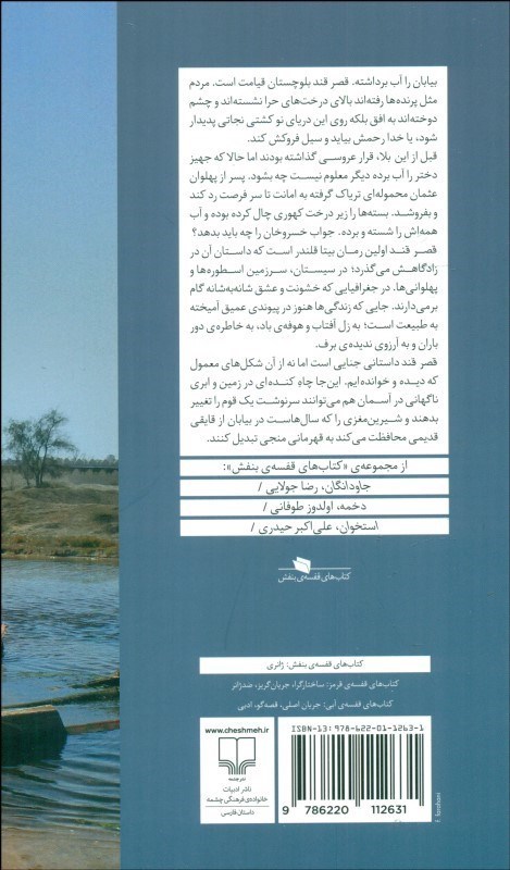 بيابان را آب برداشته. قصر قند بلوچستان قيامت است. مردم مثل پرنده ها رفته اند بالاي درخت هاي حرا نشسته اند و چشم دوخته اند به افق بلكه روي اين درياي نو كشتي نجاتي پديدار شود، يا خدا رحمش بيايد و سيل فروكش كند.