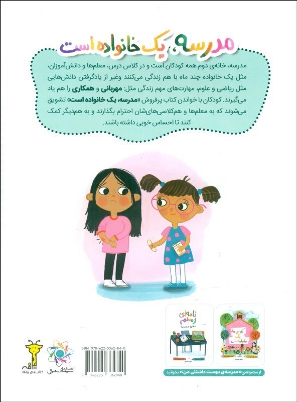 مدرسه خانه دوم همه کودکان است و در کلاس درس، معلم ها و دانش آموزان، مثل يک خانواده چند ماه با هم زندگي مي کنند و غير از ياد گرفتن دانش هايي مثل رياضي و علوم، مهارت هاي مهم زندگي مثل: مهرباني و همکاري را هم ياد مي گيرند. کودکان با خواندن کتاب پرفروش مدرسه مثل يک خانواده است تشويق مي شوند که به معلم ها و هم کلاسي هايشان احترام بگذارند و به هم ديگر کمک کنند تا احساس خوبي داشته باشند.