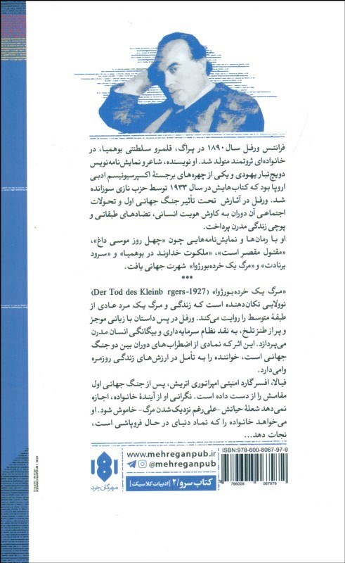 فرانتس ورفل، در سال 1890 در پراگ، قلمرو سلطنتي بوهميا، در يک خانواده ي ثروتمند چشم به جهان گشود. او نماينده ي اکسپرسيونيسم (سبکي پر از استعاره، نمادين همراه با لحن چکشي) بوده و يکي از نويسندگان دويچتبار يهودي است که کتابهايش توسط حزب نازي، در سال 1933 سوزانده شد. از ميان آثار وي مي توان به «مقتول مقصر است»، «چهل روز از موسي داغ» و «سرود برنادت» اشاره کرد.