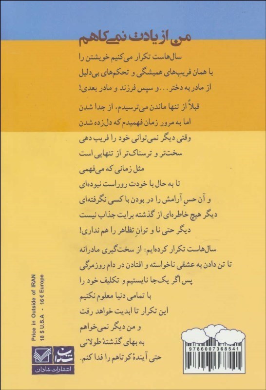 سالهاست تكرار ميكنيم خويشتن را با همان فريبهاي هميشگي و تحكمهاي بيدليل از مادر به دختر... و سپس فرزند و مادر بعدي! قبلا از تنها ماندن ميترسيدم، از جدا شدن اما به مرور زمان فهميدم كه دلزده شدن وقتي ديگر نميتواني خود را فريب دهي سختتر و ترسناكتر از تنهايي است مثل زماني كه ميفهمي تا به حال با خودت روراست نبودهاي و آن حس آرامش را در بودن با كسي نگرفتهاي ديگر هيچ خاطرهاي از گذشته برايت جذاب نيست ديگر حتي نا و توان تظاهر را هم نداري! سالهاست تكرار كردهايم: از سختگيري مادرانه تا تن دادن به عشقي ناخواسته و افتادن در دام روزمرگي پس اگر يكجا نايستيم و تكليف خود را با تمامي دنيا معلوم نكنيم اين تكرار تا ابديت خواهد رفت و من ديگر نميخواهم به بهاي گذشته طولاني حتي آينده كوتاهم را فدا كنم.