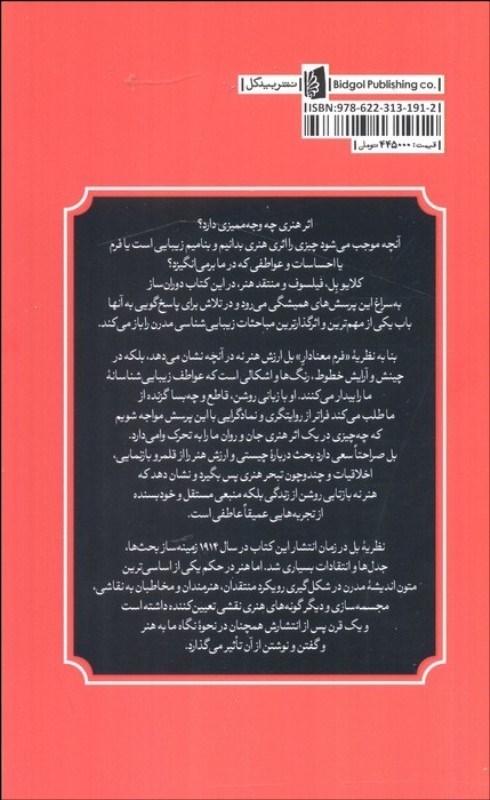 کتاب هنر نوشت? کلايو بل يکي از متون بنيادين در نظريه? زيباشناسي قرن بيستم بهشمار ميآيد. در اين اثر موجز، بل در جستجوي پاسخي به اين پرسش اساسي است: چه کيفيت مشترکي ميان اشيا احساسي زيباشناختي در مخاطب برميانگيزد؟