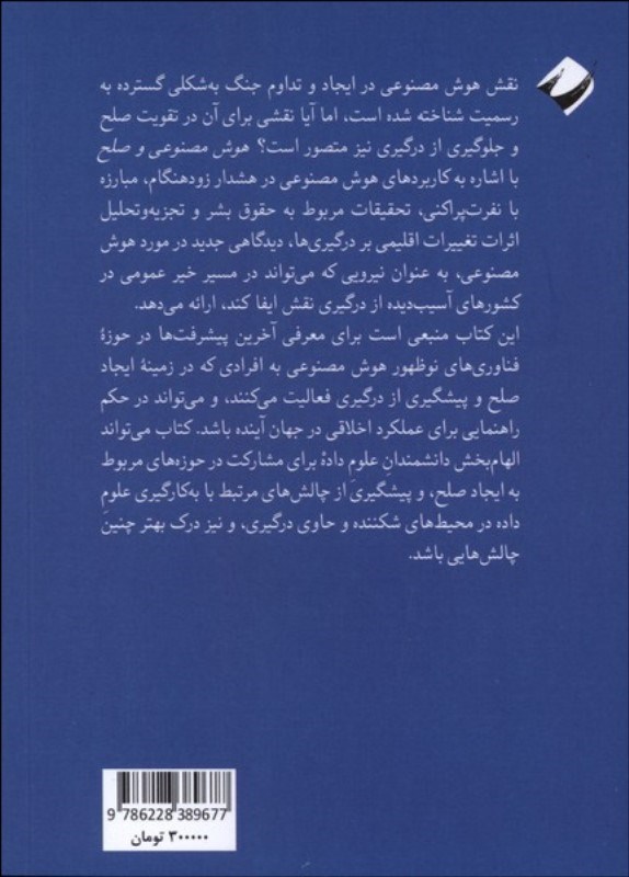 نقش هوش مصنوعي در ايجاد و تداوم جنگ بهشکلي گسترده به رسميت شناخته شده است، اما آيا نقشي براي آن در تقويت صلح و جلوگيري از درگيري نيز متصور است؟ هوش مصنوعي و صلح با اشاره به کاربردهاي هوش مصنوعي در هشدار زودهنگام، مبارزه با نفرتپراکني، تحقيقات مربوط به حقوق بشر و تجزيهوتحليل اثرات تغييرات اقليمي بر درگيريها، ديدگاهي جديد درمورد هوش مصنوعي، بهعنوان نيرويي که ميتواند در مسير خير عمومي در کشورهاي آسيبديده از درگيري نقش ايفا کند، ارائه ميدهد.