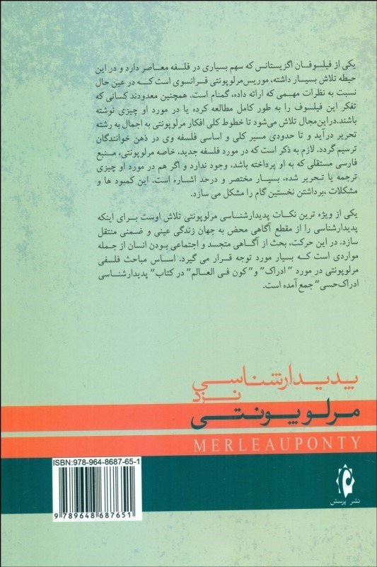 کتاب حاضر، به تشريح انديشه ها و افکار «مرلوپونتي» مي پردازد. مولف بيان مي دارد که يکي از فيلسوفان اگزيستانس که سهم بسياري در فلسفه معاصر دارد و در اين حيطه تلاش بسيار داشته، «موريس مرلوپونتي» فرانسوي است که درعين حال نسبت به نظرات مهمي که ارائه داده گمنام است. همچنين معدودند کساني که تفکر اين فيلسوف را به طور کامل مطالعه کرده يا در مورد او چيزي نوشته باشند. در اين کتاب تلاش مي شود تا خطوط کلي افکار «مرلوپونتي» به اجمال به رشته تحرير درآيد و تا حدودي مسير کلي و اساسي فلسفه وي در ذهن خوانندگان ترسيم گردد.