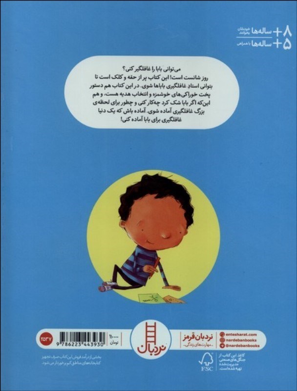 روز شانست است! اين کتاب پر از حقه و کلک است تا بتواني استاد غافلگيري باباها شوي. در اين کتاب هم دستور پخت خوراکيهاي خوشمزه و انتخاب هديه هست و هم اينکه اگر بابا شک کرد چهکار کني و چطور براي لحظهي بزرگ غافلگيري آماده شوي. آماده باش که يک دنيا غافلگيري براي بابا آماده کني!