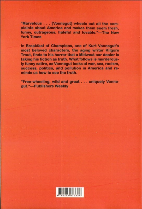 In Breakfast of Champions, one of Kurt Vonnegut’s most beloved characters, the aging writer Kilgore Trout, finds to his horror that a Midwest car dealer is taking his fiction as truth. What follows is murderously funny satire, as Vonnegut looks at war, sex, racism, success, politics, and pollution in America and reminds us how to see the truth.