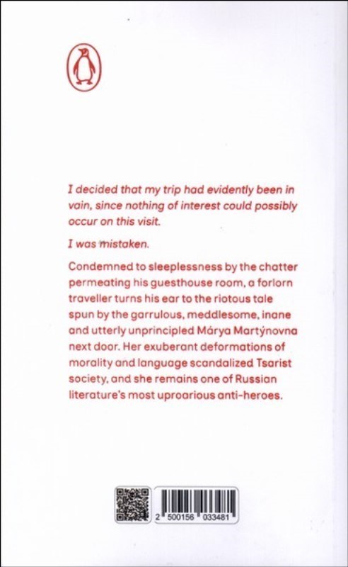 Condemned to sleeplessness by the chatter permeating his guesthouse room, a forlorn traveller turns his ear to the riotous tale spun by the garrulous, meddlesome, inane and utterly unprincipled M?rya Mart?novna next door. Her exuberant deformations of morality and language scandalized Tsarist society, and she remains one of Russian literature’s most uproarious anti-heroes.