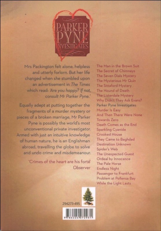 Equally adept at putting together the fragments of a murder mystery or the pieces of a broken marriage, Mr. Parker Pyne is possibly the world's most unconventional private investigator. Armed with just his intuitive knowledge of human nature, he is an Englishman abroad, traveling the globe to solve and undo crime and misdemeanor.