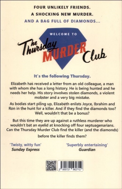Then, as night follows day, the first body is found. But not the last. Elizabeth, Joyce, Ron and Ibrahim are up against a ruthless murderer who wouldn’t bat an eyelid at knocking off four septuagenarians. Can our four friends catch the killer before the killer catches them? And if they find the diamonds, too? Well, wouldn’t that be a bonus? You should never put anything beyond the Thursday Murder Club.